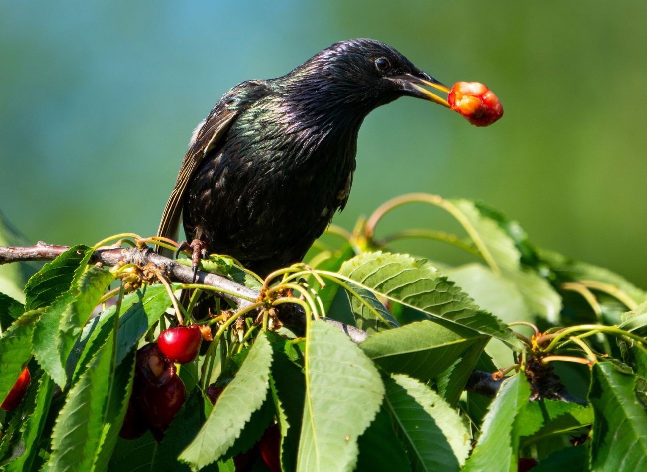 - szpaki - to prawdziwe łasuchy, jeśli chodzi o owoce. Gromadzą się w dużych stadach, co sprawia, że potrafią w krótkim czasie ogołocić cały krzew. Ich ulubione przysmaki to wiśnie, czereśnie i borówki;