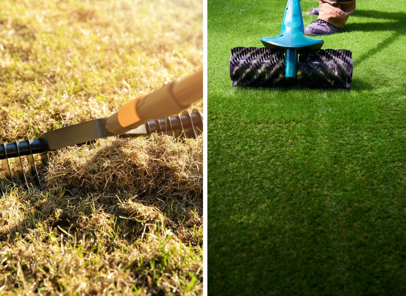 - Wertykulacja lub aeracja w ramach rekultywacji trawnika