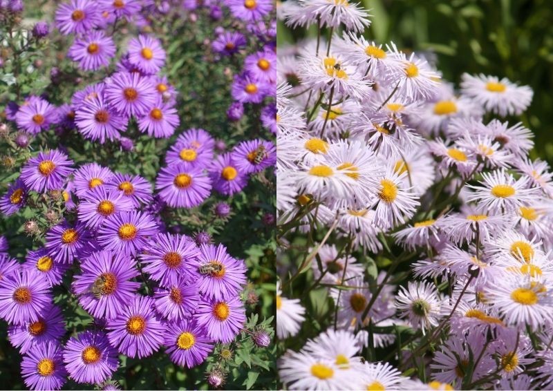 Aster nowoangielski w dwóch odmianach, cudnie upiększy twój ogród jesienią. Fot. apugach, kazakovmaksim/Canva Pro