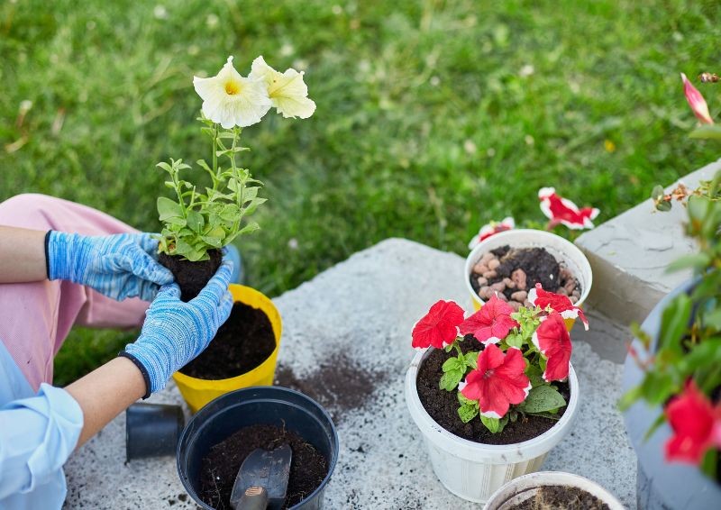 Surfinii Nie sadzimy jej ani zbyt głęboko, żeby nie zagniwała, ani zbyt płytko. Fot. CanvaPro