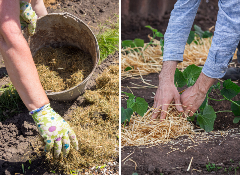 - Słoma – wyschnięte i rozdrobnione łodygi zbóż to dobry wybór na naturalną ściółkę na rabaty. W odróżnieniu od siana stosowanie słomy do mulczowania nie niesie za sobą ryzyka rozsiania chwastów. Ściółka ta rozkłada się z czasem, tworząc naturalny nawóz.
