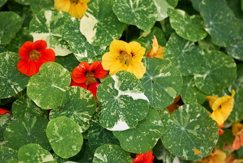 Nasturcja pnąca kwitnie aż do przymrozków. Ma nie tylko urocze kwiaty, które odstraszają ślimaki, ale również piękne liście. Fot. seven75/CanvaPro