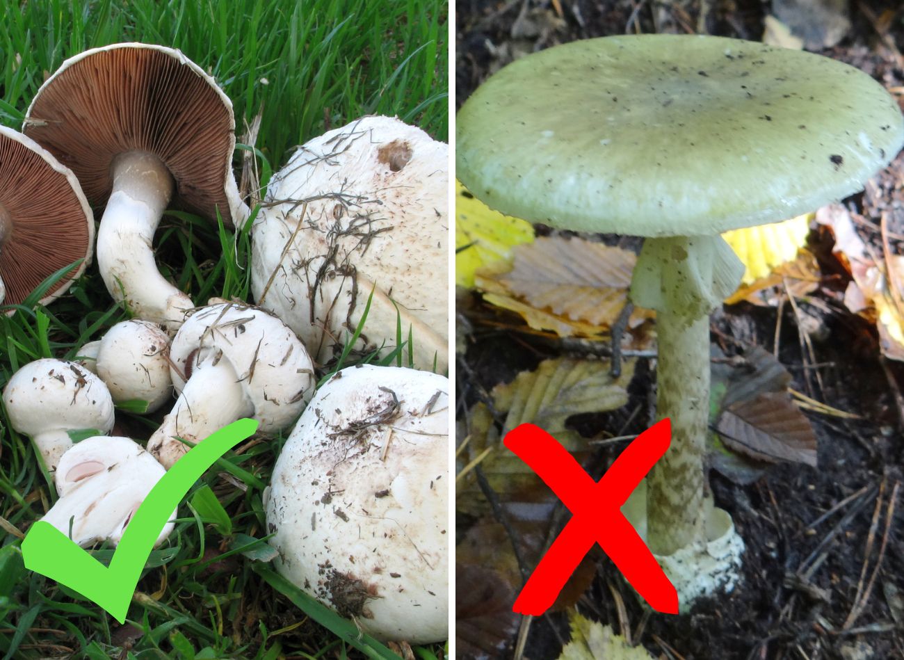 - Pieczarka łąkowa vs. muchomor sromotnikowy