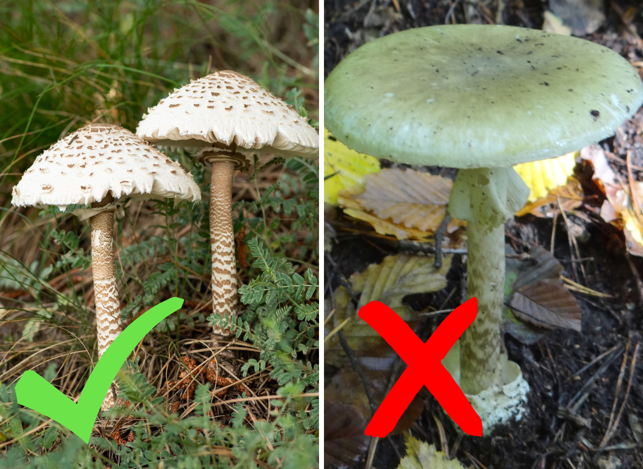 - Czubajka kania vs. muchomor zielonawy (sromotnikowy) i plamisty