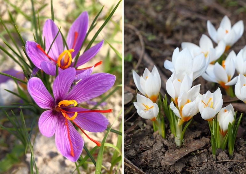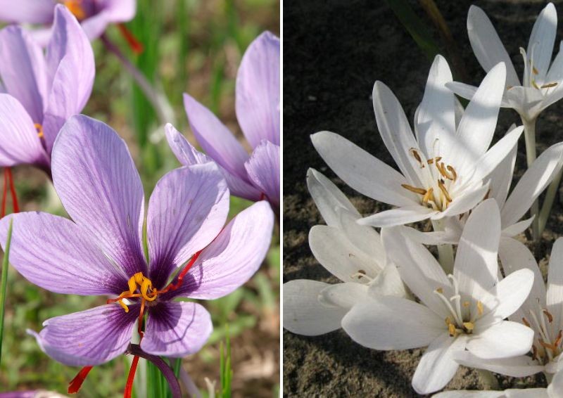 Rozróżnienie krokusa od zimowita nie należy do najłatwiejszych. Po lewej: krokus, po prawej: zimowit. Fot. viperagp/krrad/123RF.com