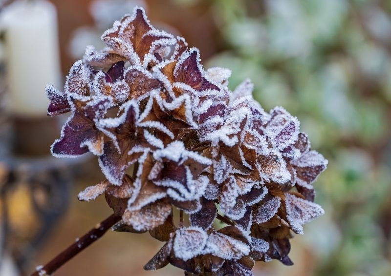 Duże problemy zimą mają także hortensje ogrodowe. Ich pąki kwiatowe zawiązują się na pędach zeszłorocznych, więc każdy silniejszy mróz może pozbawić je kwitnienia na cały sezon. Roślina przeżyje, ale efekt wizualny będzie zapewne daleki od oczekiwań.