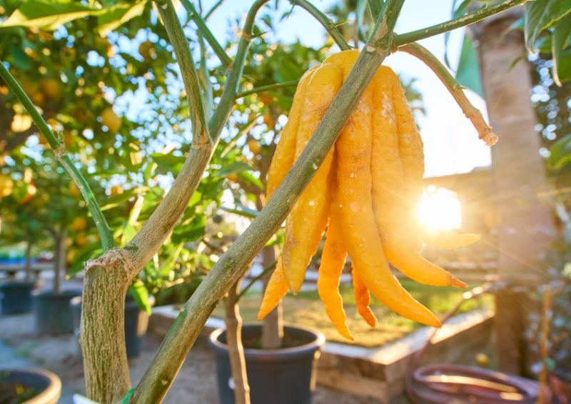 Odmiana 'Ręka Buddy' potrafi też przybierać nietypowe kształty. Fot. imv/Canva Pro