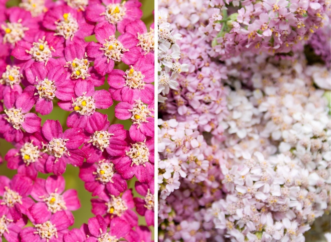 - krwawnik pospolity 'Apfelblute' – różowe kwiatostany;
