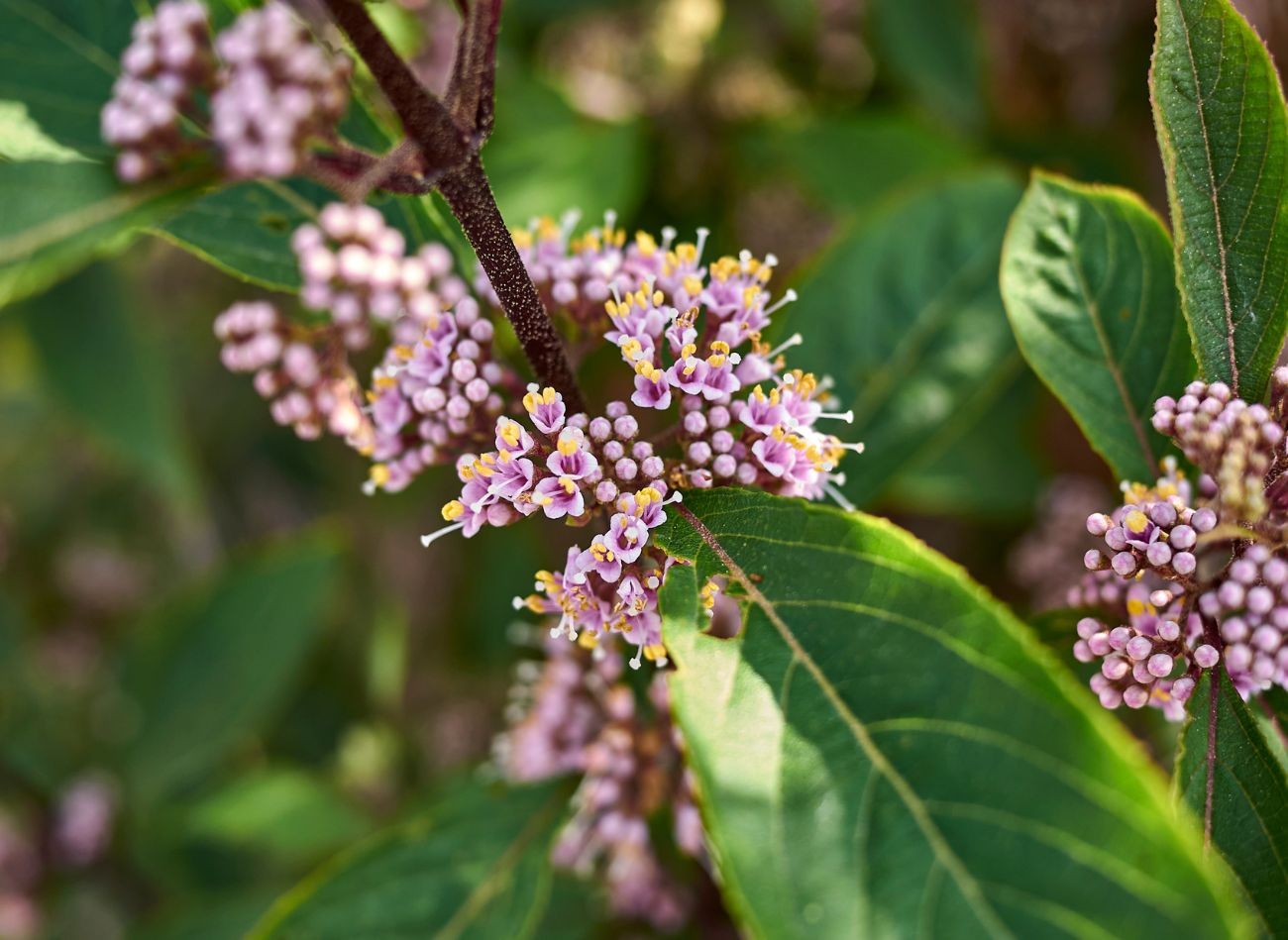 Pięknotka nie tylko zjawiskowo owocuje, jej kwiaty są równie piękne. Fot. weggelaar/Canva Pro