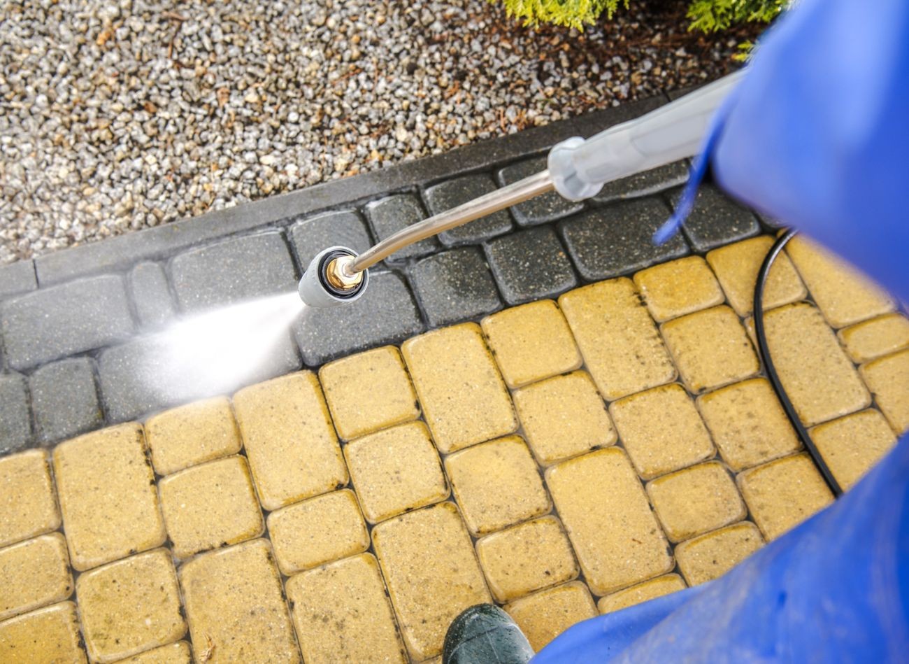 Myjka ciśnieniowa to pomocne narzędzie nie tylko do czyszczenia kostki brukowej, ale też do pozbywania się z niej chwastów. Fot. 123RF.com