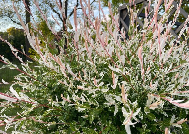 Wierzba japońska Hakuro (Salix integra 'Hakuro-Nishiki') to jedna z najpopularniejszych odmian wierzby przeznaczona do małych ogrodów. Jej największym atutem są młode przyrosty o różowo-białym zabarwieniu, które w miarę dojrzewania stają się jasnozielone z różowymi akcentami.