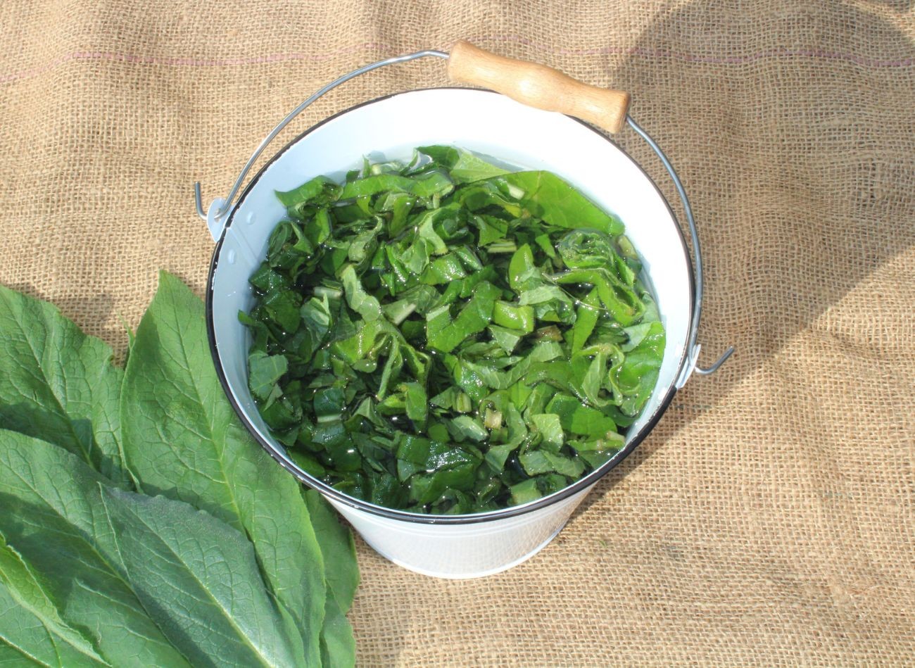 Liście wystarczy rozdrobnić – np. grubo pokroić albo pociąć, a następnie umieścić je w dużym plastikowym lub drewnianym pojemniku. Następnie zalewamy je wodą i odstawiamy do fermentacji w ciemne i ciepłe miejsce na ok. 2 tygodnie. Musimy pamiętać, aby co dwa dni przemieszać płyn. Nawóz będzie gotowy do użycia, kiedy na jego powierzchni przestaną pojawiać się bąbelki, a płyn stanie się ciemny.