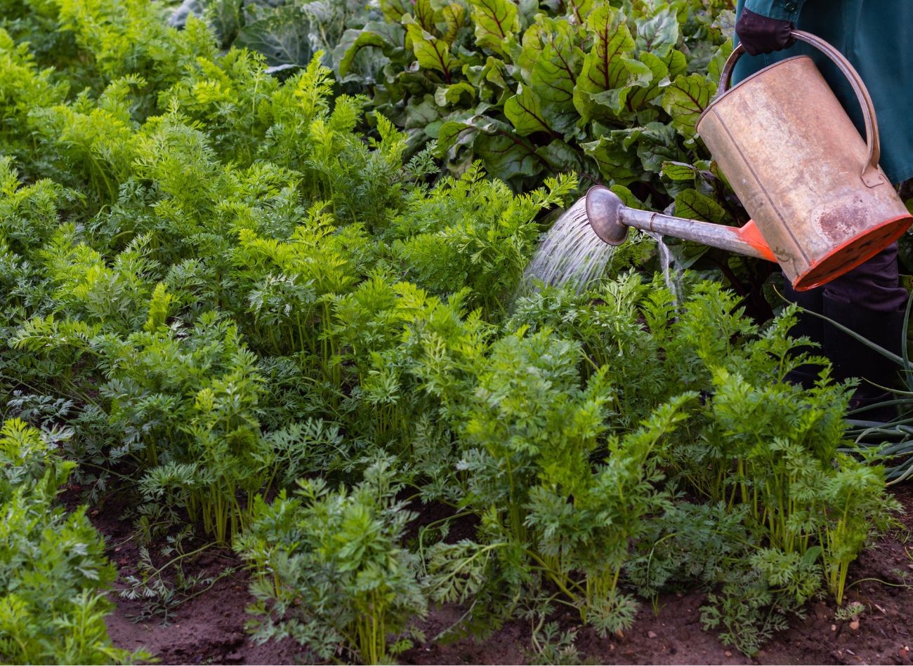 W lipcu marchew znajduje się w fazie intensywnego wzrostu korzenia, przez co ma duże zapotrzebowanie na wodę. Podlewaj ją regularnie, najlepiej 2-3 razy w tygodniu, a podczas upalnych dni nawet codziennie. Nawadnianie powinno być na tyle obfite, by woda dotarła do głębszych warstw gleby – to pobudza roślinę do "szukania wody" i wydłużania korzeni spichrzowych. Zalecana ilość to ok. 10-25 l wody na metr kwadratowy uprawy, w zależności od pogody i rodzaju gleby.