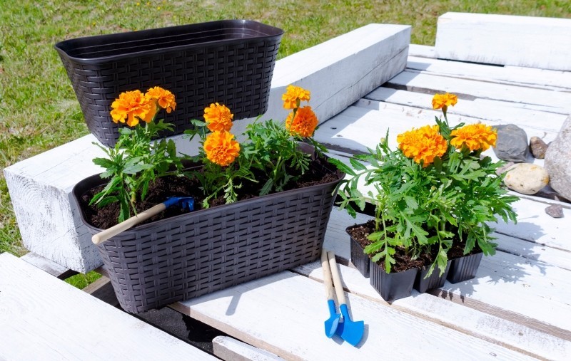 Aksamitki można sadzić do donic i na rabatach dopiero w połowie maja. Fot. 123RF.com