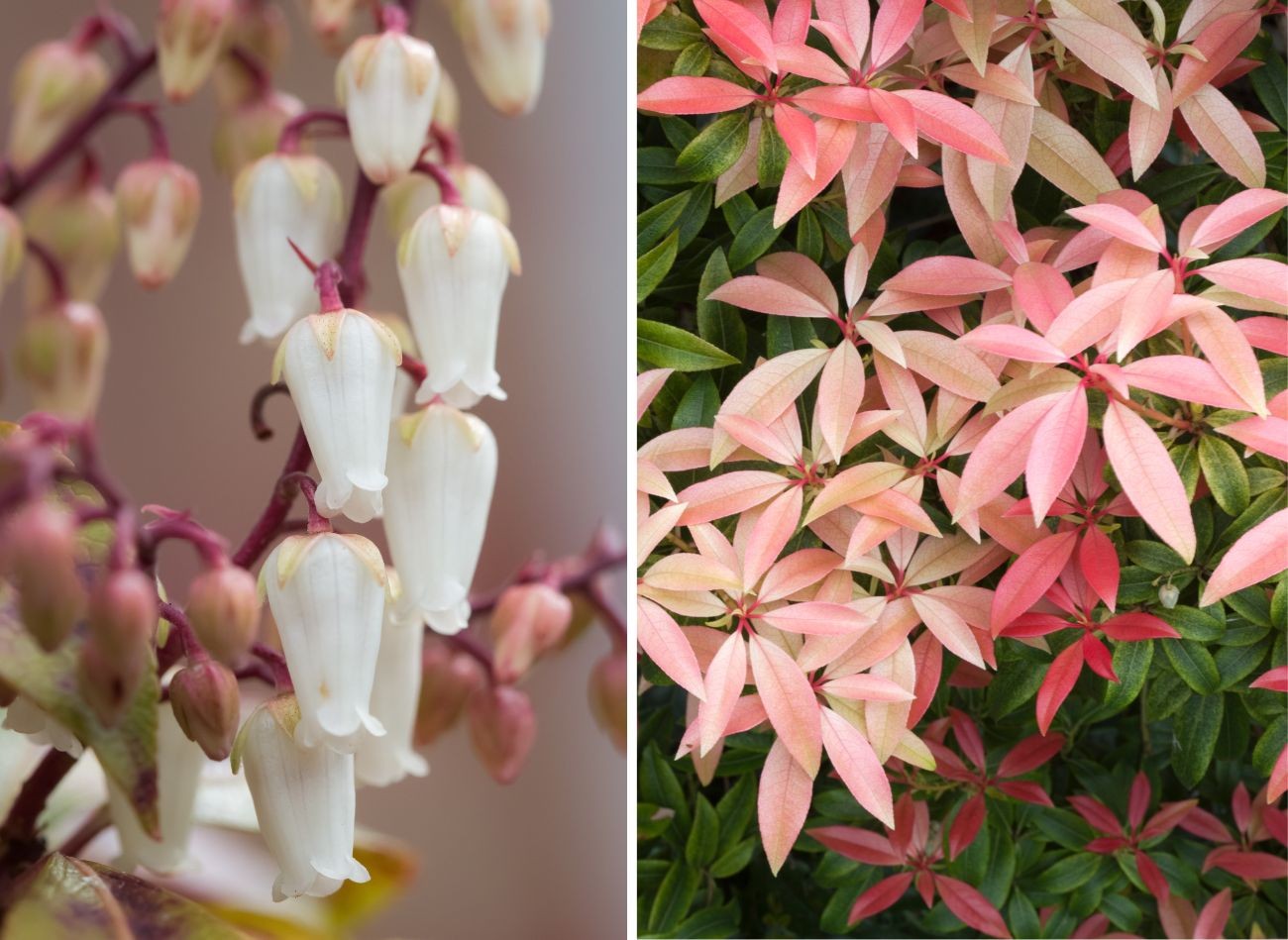 Pierisy mają wiele odmian. Krzew zdobią nie tylko oryginalne kwiaty, ale również liście. Fot.ShaftInAction/FlickImage/CanvaPro
