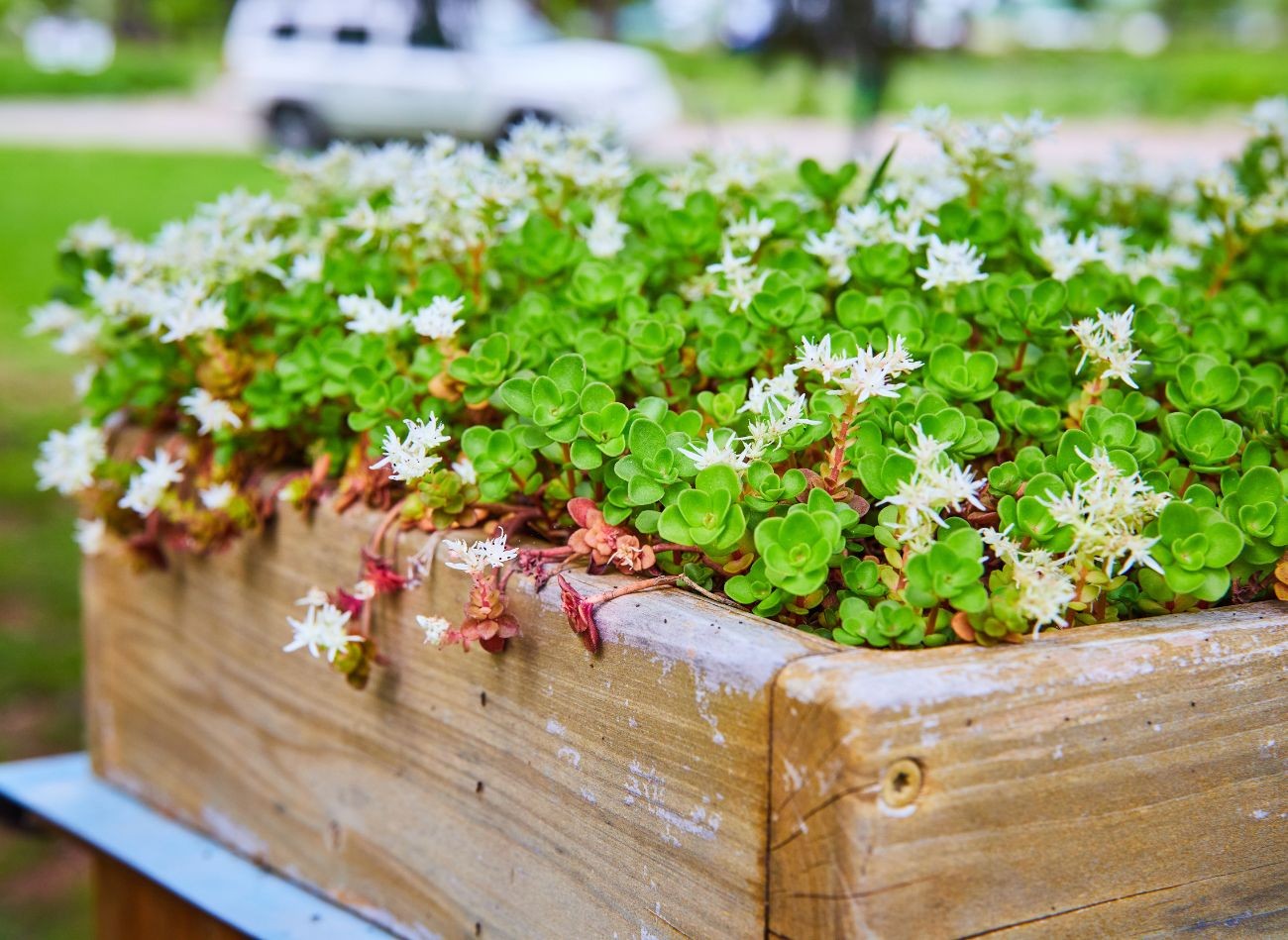 Rozchodnik trójlistny pięknie prezentuje się w donicach i skrzyniach. Fot. gyro /CanvaPro