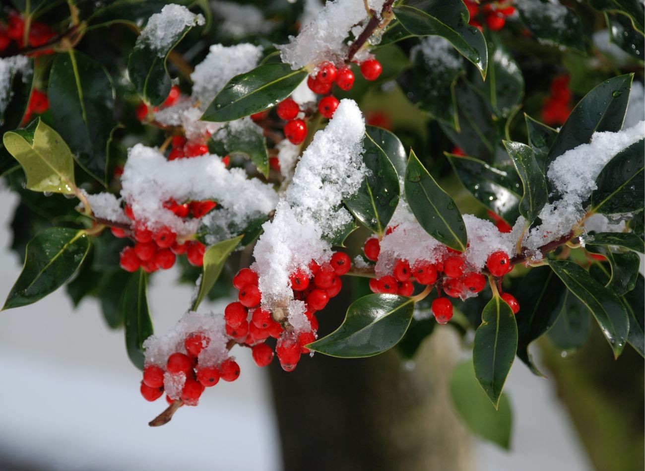 Liście ostrokrzewu są wyjątkowe, ale najpiękniej prezentuje się zimą, podczas owocowania. Fot. CanvaPro