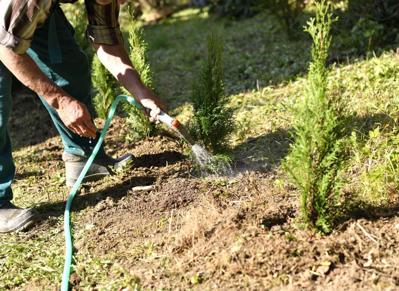 Pamiętajmy, że po posadzeniu tuje potrzebują bardzo dużo wody. Fot. 123RF/Piscel