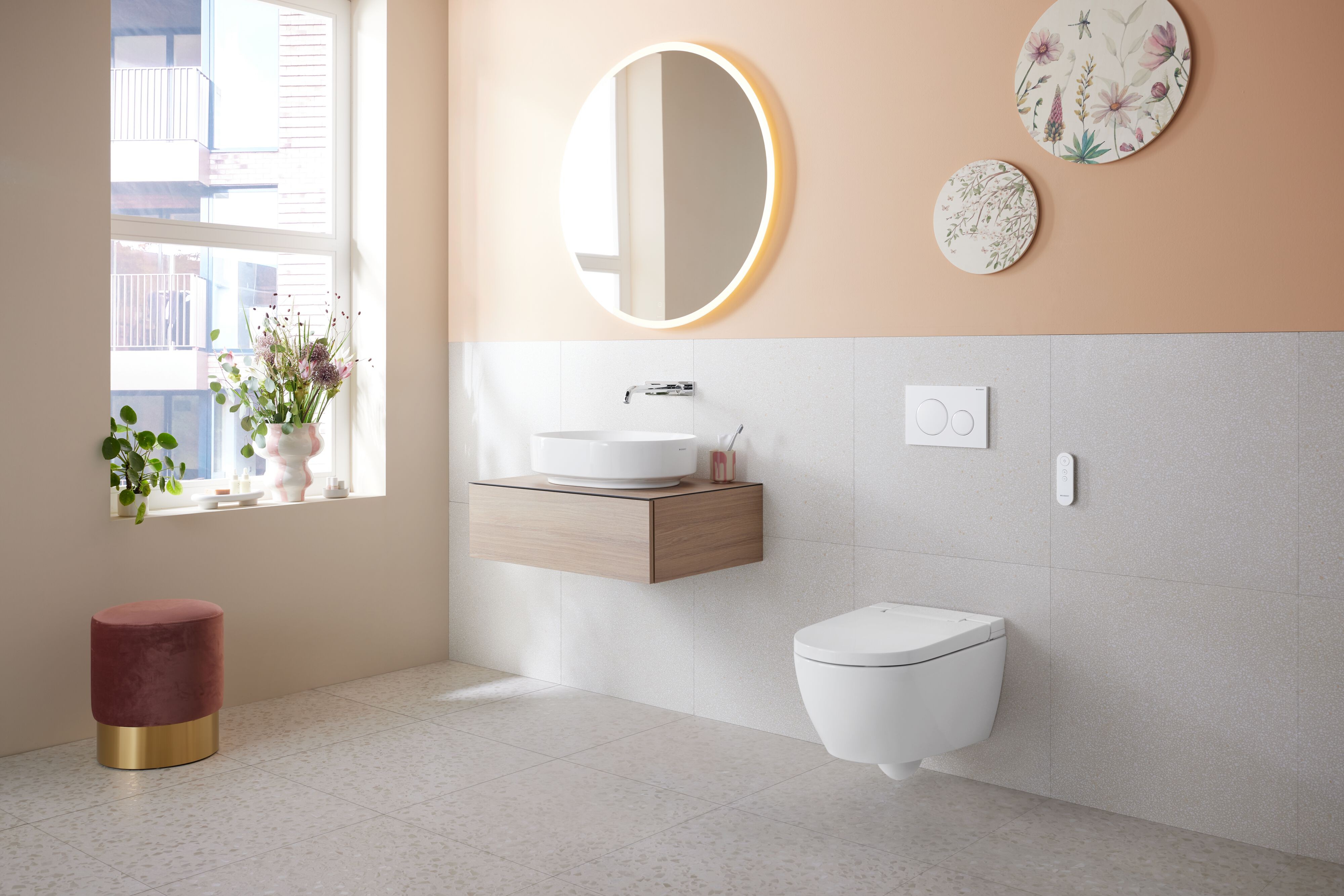 Łazienka w pastelowych kolorach z toaletą myjącą / materiały promocyjne