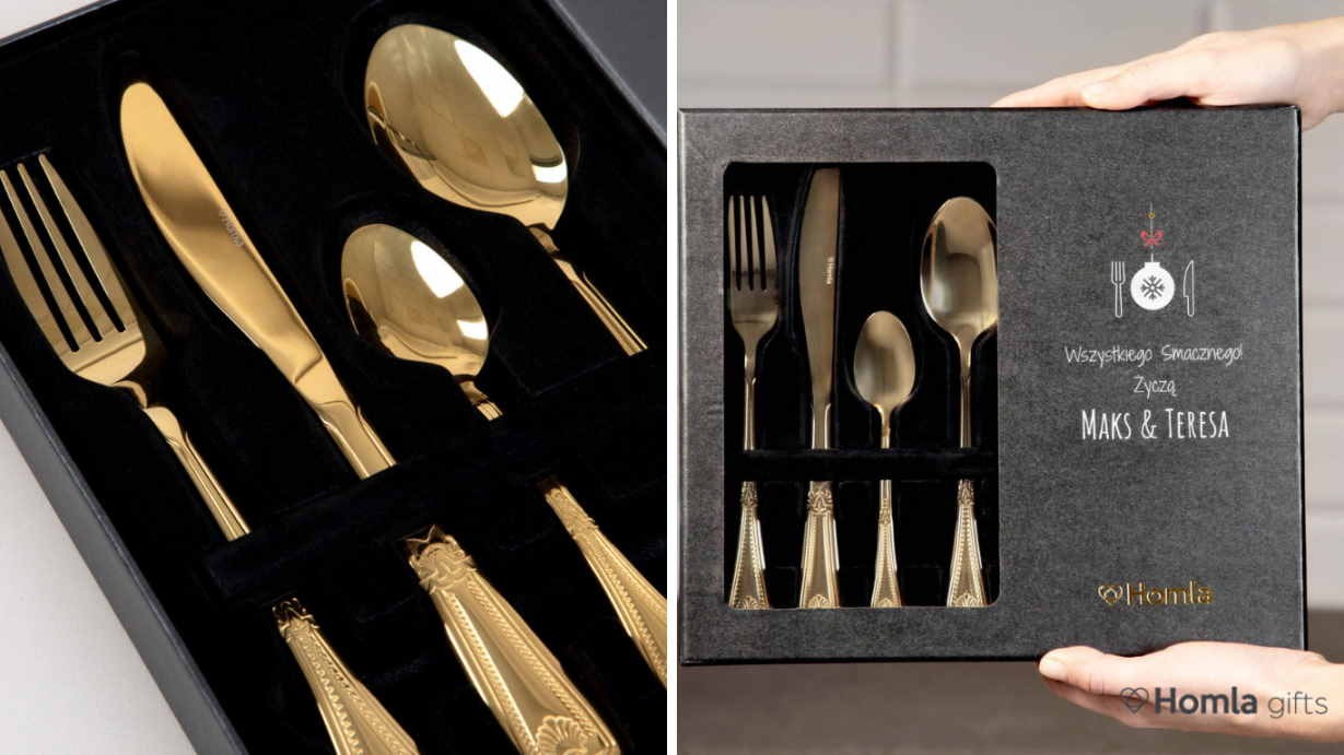 Zestaw złotych sztućców to klasyk, który będzie idealnym prezentem dla rodziców na święta / materiały promocyjne