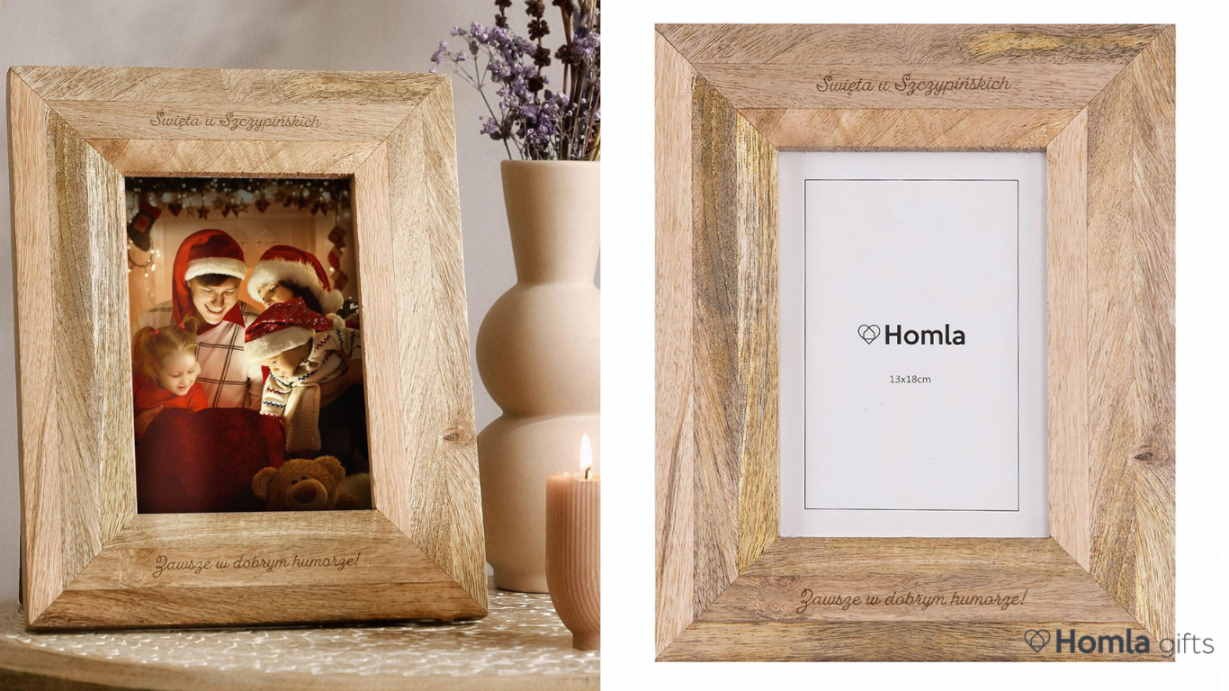 Najlepszym prezentem będzie ramka na zdjęcie z grawerem. Ramka może być zarówno romantycznym prezentem na święta dla dziewczyny, jak i sentymentalnym upominkiem dla rodziców czy dziadków. Wszystko zależy od tego, jakie zdjęcie znajdzie się w środku. Dopisz własny tekst, który zostanie wygrawerowany na drewnianej ramce i stwórz wyjątkowy prezent na święta.