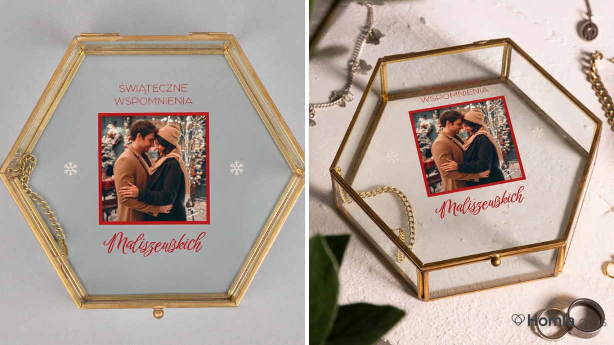 Świetnym pomysłem na prezent pod choinkę będzie upominek ze zdjęciem. Personalizacja z nadrukiem w formie fotografii sprawi, że Twój upominek będzie zabawny, sentymentalny i pamiątkowy. Zapoznaj się z naszymi prezentami, na których może znaleźć się zdjęcie wgrane prosto z Twojego albumu. Dobrym pomysłem na świąteczny prezent będzie kubek z nadrukiem — gorąca herbata w personalizowanym naczyniu to świetny sposób na relaks. Zdjęcie może się znaleźć także na innych produktach, m.in. na eleganckich szklanych szkatułkach. Śliczna, złota szkatułka z nadrukiem to wymarzony prezent na święta dla każdego miłośnika nietuzinkowych dekoracji. Można wykorzystać ją jako pudełeczko na osobiste pamiątki lub podstawkę do świątecznej aranżacji.