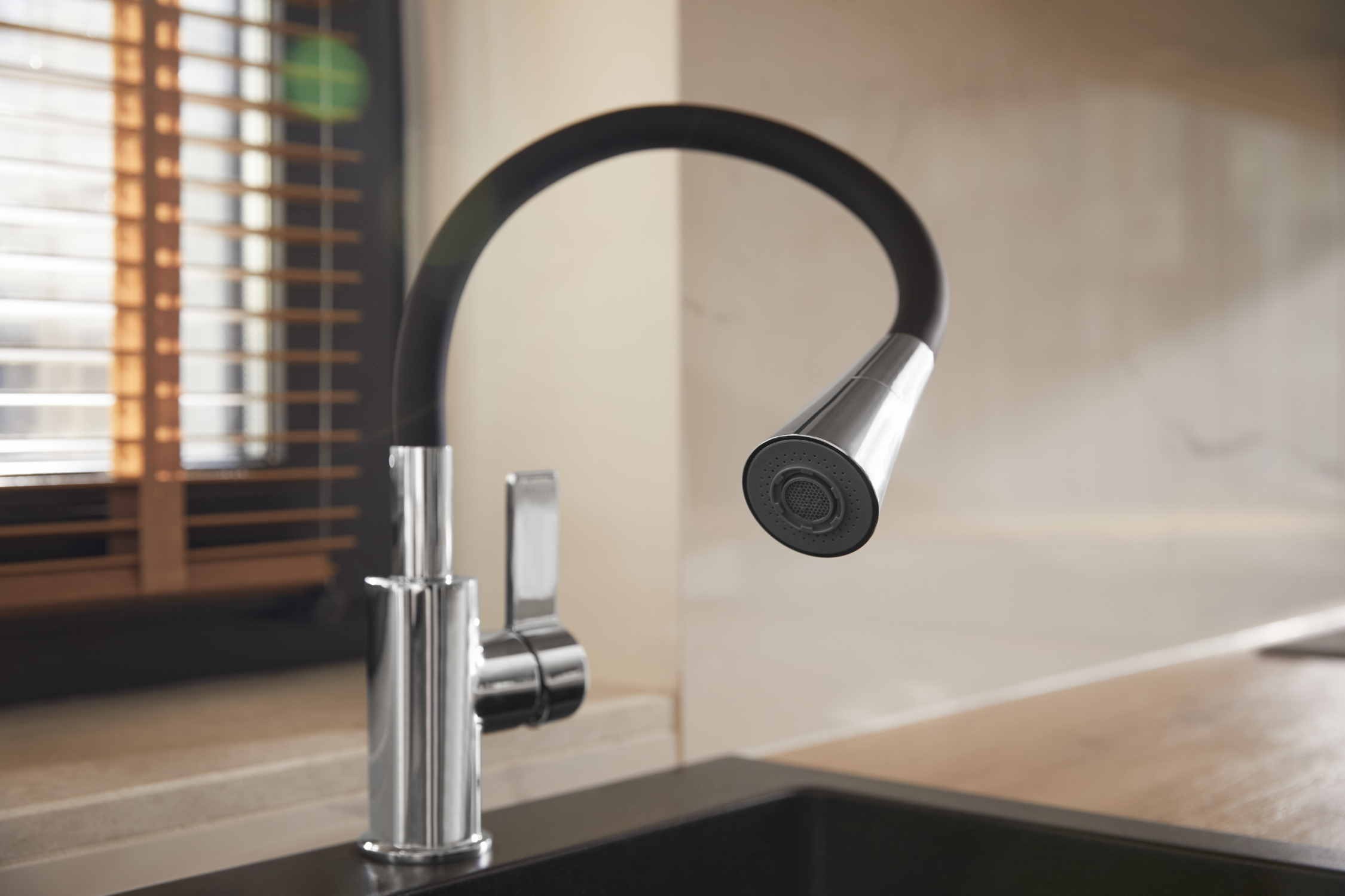 Bateria Rumba DUO ma nie tylko giętką wylewkę, ale również przełącznik strumienia wody / materiały promocyjne