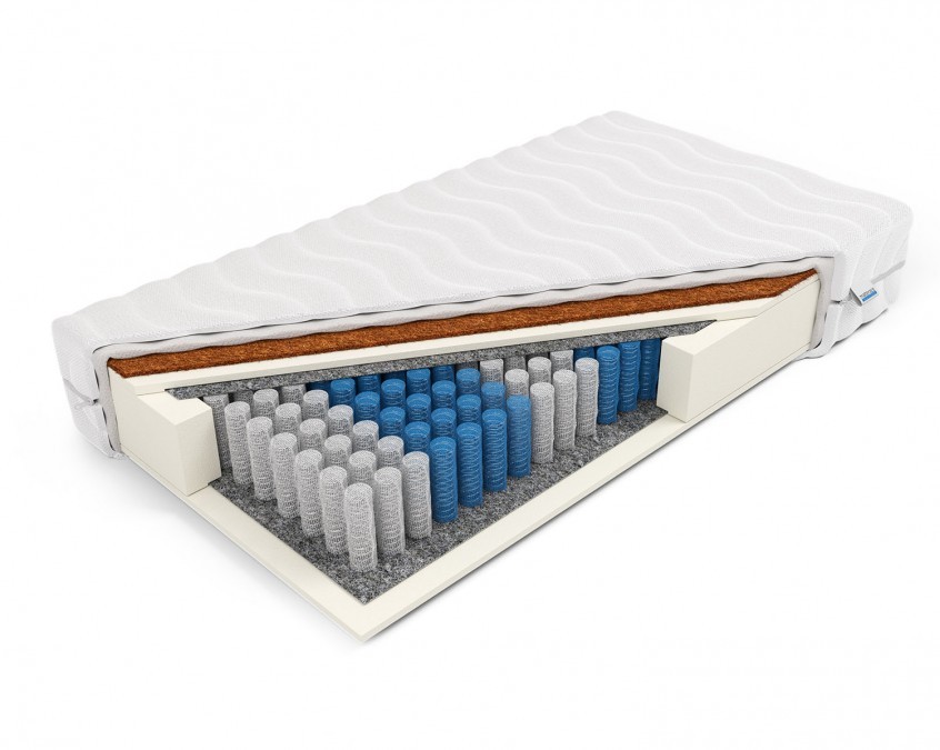 Materac multipocket Horus to zaawansowany materac, który łączy sprężyny o wysokiej gęstości z elastycznym lateksem i utwardzającym kokosem. Doskonały wybór dla osób wymagających maksymalnego komfortu oraz solidnego wsparcia kręgosłupa. Warstwa pianki lateksowej sprawia, że materac zyskuje dodatkowe właściwości antyalergiczne.