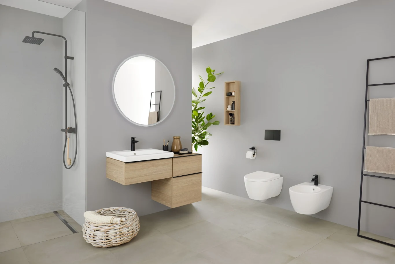 Bidet czy toaleta myjąca Geberit prezentują się wyjątkowo estetycznie, na co wpływ mają na przykład ukryte mocowania. Dlatego pod tym kątem zdecydowanie wygrywają z bidettą. Ich atutem jest też to, że znacznie ułatwią aranżację łazienki. Idealnie bowiem pasują do umywalek czy mebli łazienkowych z systemu Geberit Mix & Match. Warto ponadto wspomnieć o tym, że takie urządzenia łatwiej utrzymasz w czystości. Na przykład w toalecie AquaClean dostępna jest funkcja odkamieniania.