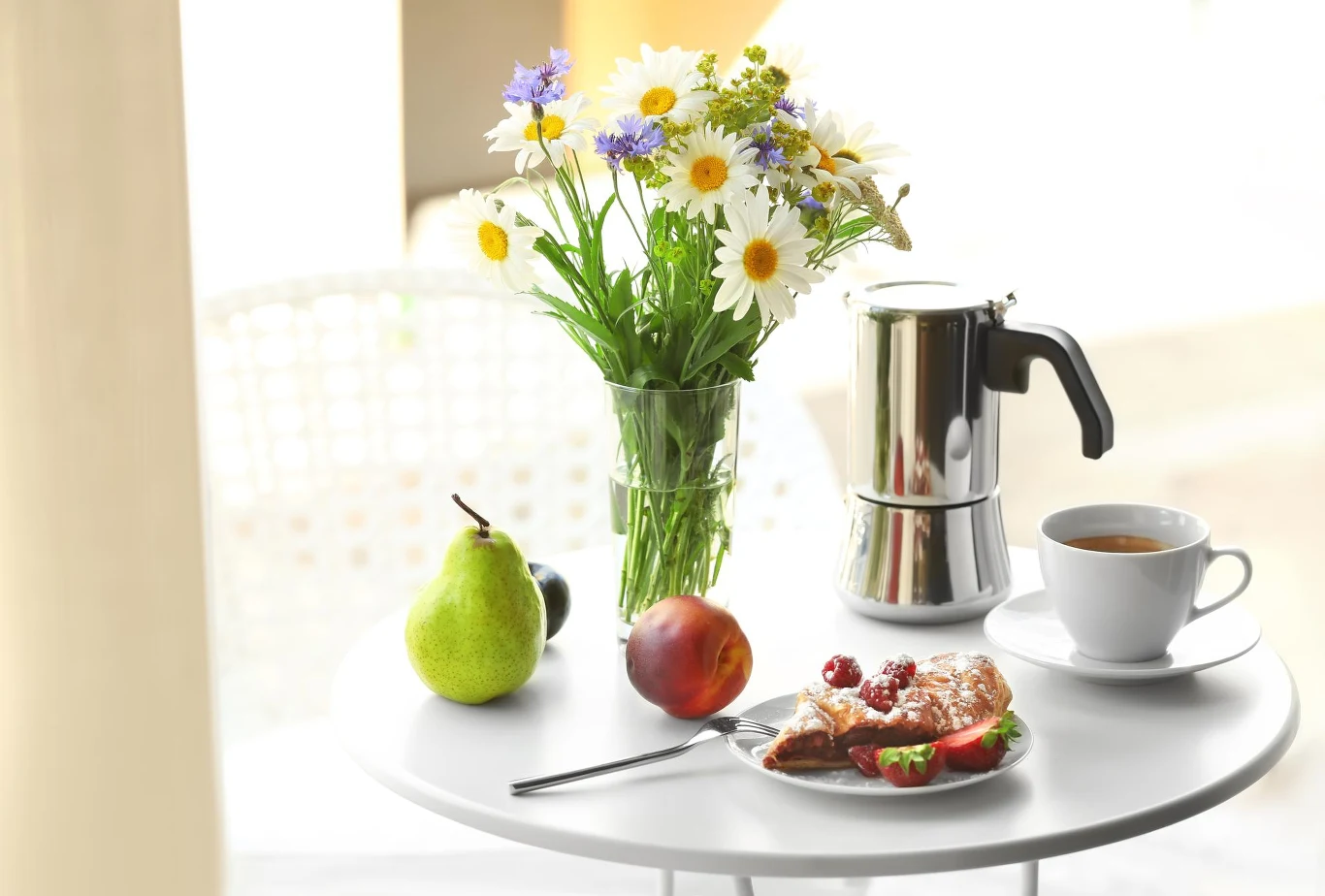 Kawa najlepiej smakuje przy naturalnym świetle, dlatego planując kącik śniadaniowy, warto wykorzystać okno jako centralny punkt aranżacji. Delikatne firany do kuchni sprawiają, że wnętrze wypełnia się miękkim blaskiem, a słońce jest subtelnie filtrowane. Jasne tkaniny dodają lekkości i wprowadzają poczucie świeżości, dzięki czemu poranna przestrzeń staje się przytulna i inspirująca. Modele w pastelowych barwach czy z lekkimi haftami tworzą dekorację, która jednocześnie jest funkcjonalna i estetyczna.