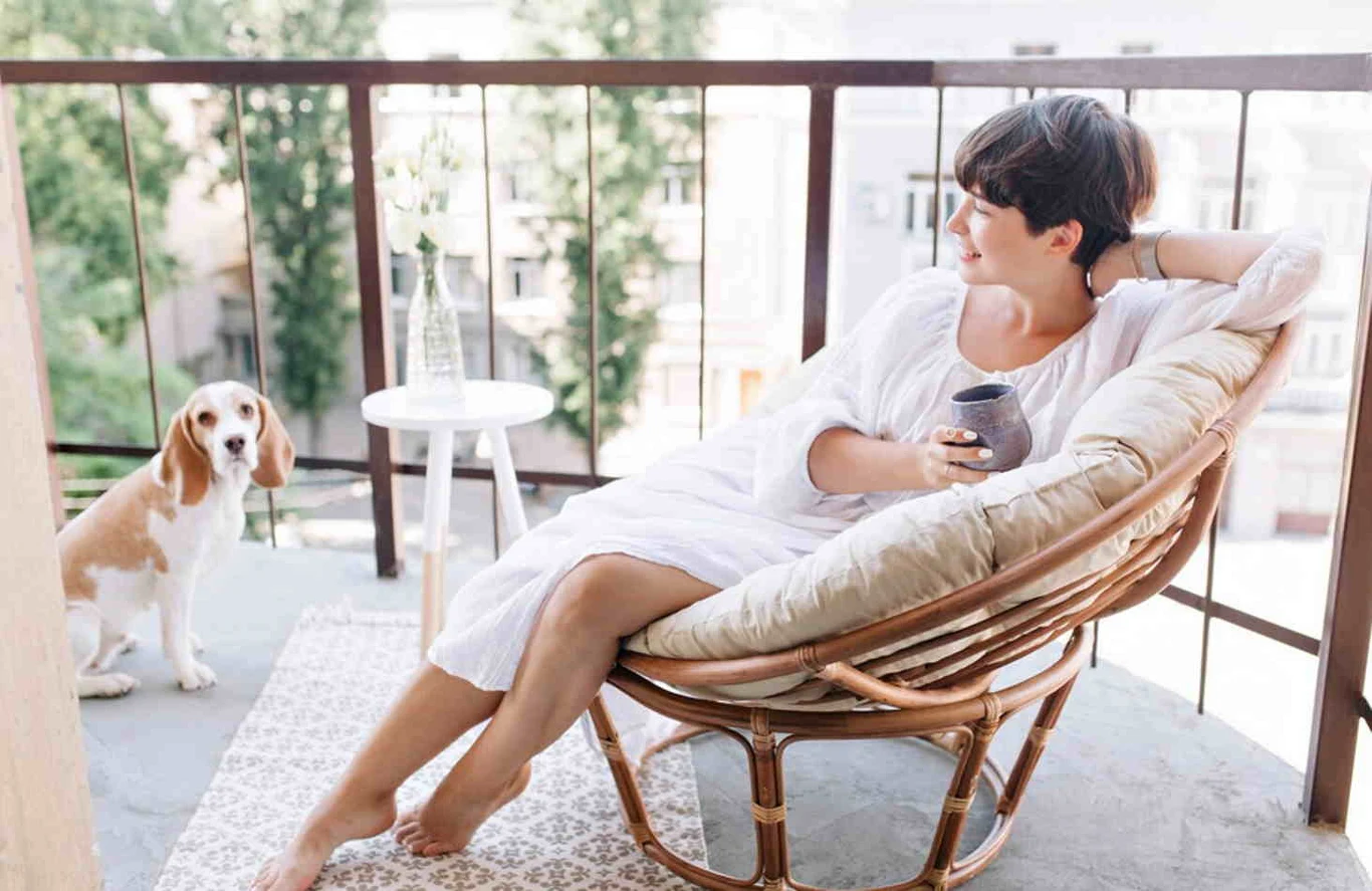 Wybierając meble na balkon, możesz zdecydować się zarówno na klasyczny zestaw dwóch krzeseł ze stolikiem, jak i na wiszący fotel. Fotel z makramy doskonale sprawdza się w aranżacjach romantycznych i boho. Dzięki niemu przestrzeń wypoczynkowa staje się wyjątkowo przytulna i jednocześnie praktyczna. Makramowe siedzisko w każdej chwili możesz zdjąć z haka, by zyskać więcej przestrzeni do innych celów.