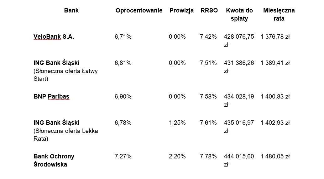 Powyższe zestawienie pokazuje, że różnice między ofertami mogą być znaczące, nawet jeśli na pierwszy rzut oka oprocentowanie wygląda podobnie. Ważne jest, aby dokładnie przeanalizować wszystkie parametry, zanim podejmiesz decyzję.