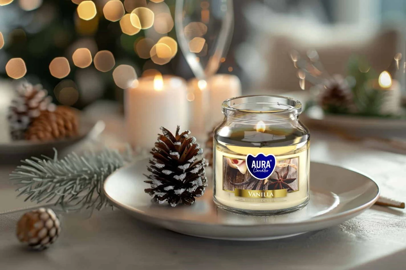 Stwórz własne kompozycje, łącząc świece z innymi elementami zimowych aranżacji, jak np. szyszki, gałęzie choinki czy suszone owoce. Wykorzystaj na przykład małe świece Aura pakowane po 30 sztuk, aby zbudować zachwycające kompozycje w transparentnych naczyniach.