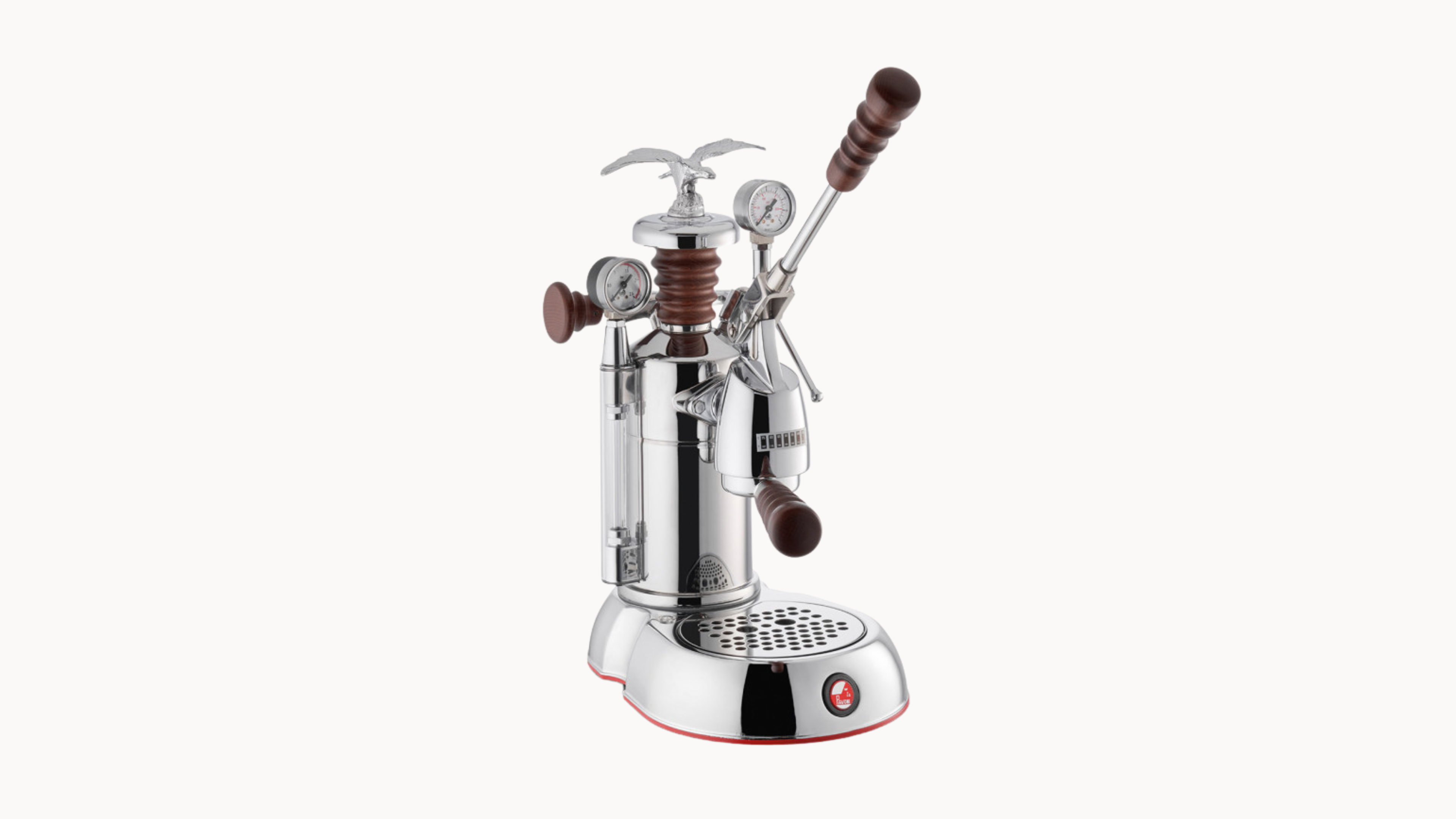 Model Esperta Abile posiada chociażby wskaźnik temperatury grupy czy ciśnieniomierz pozwalający na profilowanie ciśnienia używanego do zaparzania (jako, że jest to ekspres dźwigniowy mamy taką możliwość). Przy tym jest to ekspres po prostu piękny. Połączenie nierdzewnej stali, charakterystycznej dla La Pavoni z chromowanym mosiądzem i szlachetnymi, drewnianymi elementami tworzą poczucie niezwykłego luksusu. Ten ekspres również zdobi figura orła dumnie spoczywająca na szczycie.