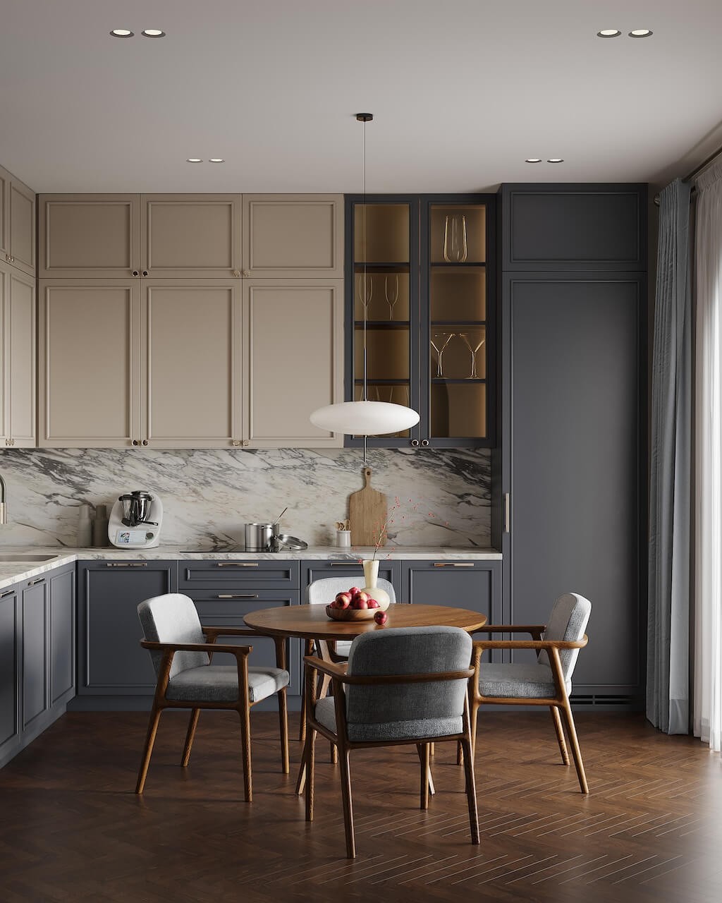 Minimalistyczny design pochłaniaczy podszafkowych sprawia, że są ponadczasowe i niezwykle uniwersalne. Genialnie wpisują się we wnętrzarskie trendy. Zestawione z monochromatycznymi meblami, oszczędną paletą barw i naturalnymi materiałami podkreślą subtelny charakter przestrzeni. W aranżacjach glamour, soft glam czy Hampton odnajdą się równie dobrze. Zabudowa na wysoki połysk, terazzo, marmury Calacatta i ornamentowane szkło będą głównymi bohaterami kuchni, a okap harmonijnie wpisze się w całość. A co w przypadku loftów i soft loftów? W industrialnych wnętrzach, w których króluje surowy klimat, oszczędna bryła pochłaniacza będzie najlepszym wyborem. Niezależnie od konwencji, w której urządzasz swoje „serce domu” prosty w wyrazie pochłaniacz zaskoczy Cię opanowaną do perfekcji umiejętnością dopasowania.