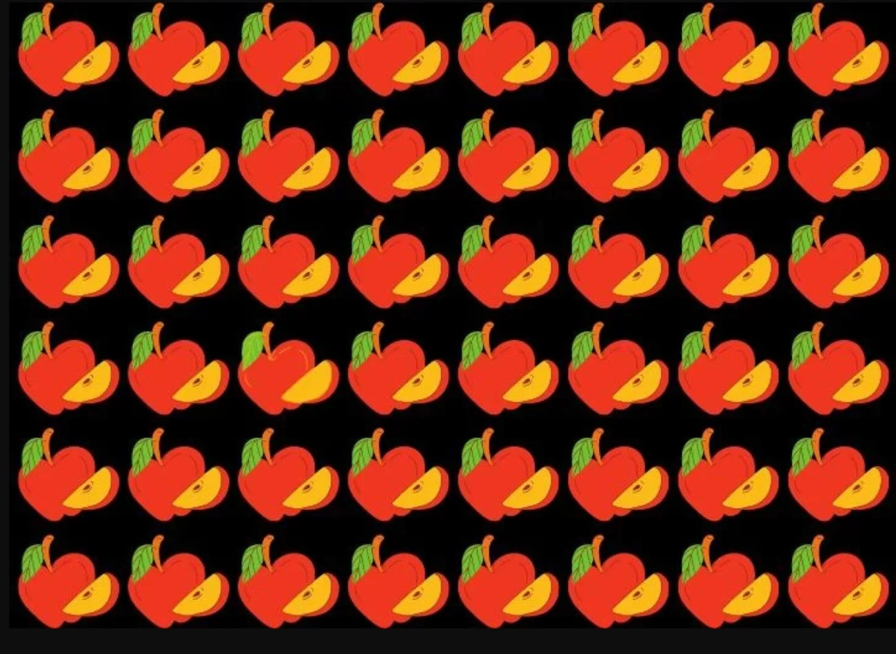 Udało ci się znaleźć inne jabłko? Możesz być z siebie dumny, zwłaszcza gdy zrobiłeś to w mniej niż 10 sekund. Jesteś mistrzem zagadek optycznych! Jeśli jednak nie możesz znaleźć odmienne jabłko, poniżej czeka na ciebie rozwiązanie. Jest to owoc, który nie ma pestki.