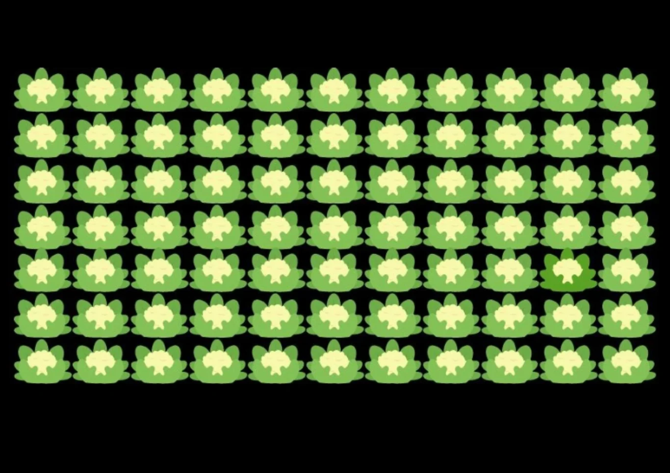 Ta zagadka optyczna na pierwszy rzut oka wydaje się banalnie prosta, ale wcale taka nie jest. Przyjrzyj się prezentowanemu przez nas obrazkowi. Wśród wielu identycznych kalafiorów, tylko jeden wygląda inaczej. Dasz radę go znaleźć? Temu wyzwaniu podołają tylko najbardziej spostrzegawczy ogrodnicy. Wytęż wzrok i włącz stoper, ponieważ masz zaledwie 12 sekund na rozwiązanie tej zagadki. Do dzieła!