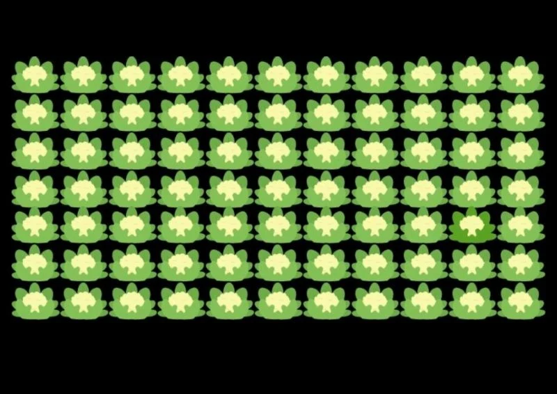 Wiesz, gdzie jest inny kalafior? Możesz być z siebie dumny, ponieważ nie każdy może pochwalić się sokolim wzrokiem. Jeśli zrobiłeś to w mniej niż 12 sekund, możesz nazywać się mistrzem spostrzegawczości. Jeżeli mimo wpatrywania się w obraz nie udało ci się dostrzec, gdzie jest inny kalafior, nie martw się. Poniżej podajemy odpowiedź. Zwróć uwagę na kolor kalafiora Pamiętaj, że praktyka czyni mistrza. Im częściej będziemy rozwiązywać zagadki optyczne, tym lepiej.