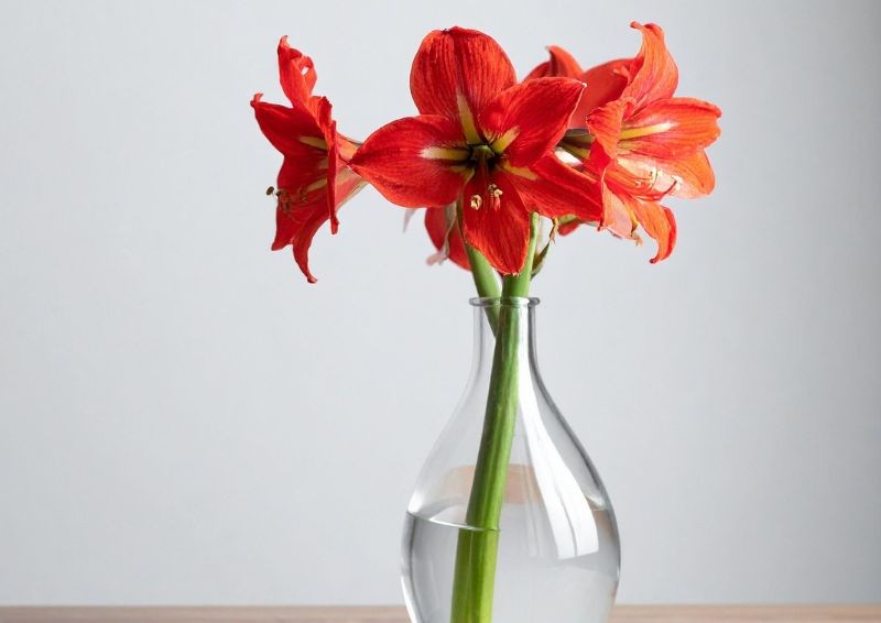 Kluczowe znaczenie przy trzymaniu kwiatów ciętych ma ilość wody w wazonie. Amarylisy mają skłonność do gnicia, dlatego nie powinno jej być zbyt dużo. Dodatkowo łodygi szybko stają się miękkie, co sprawia, że uginają się pod ciężarem kwiatów. W efekcie całość wygląda na oklapniętą. Z tego powodu zaleca się, aby wypełnić wazon wodą jedynie na szerokość dłoni.