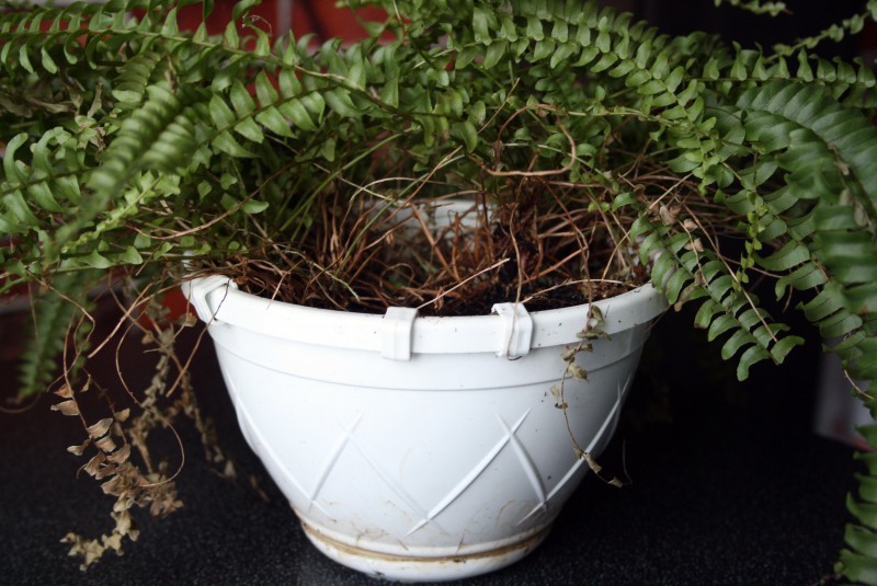 - ziemia w doniczce z paprocią pokryła się pleśnią