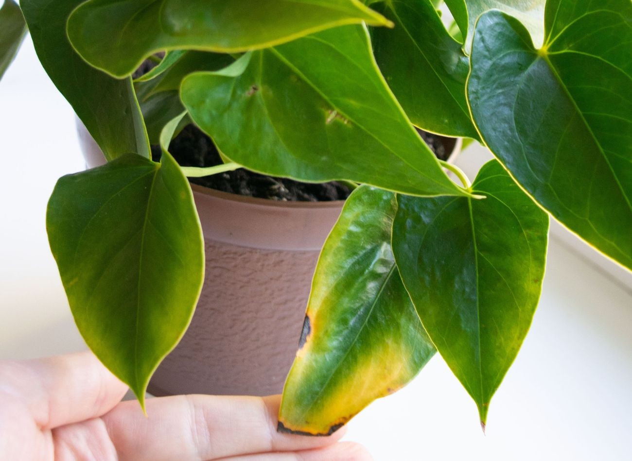 Odżywkę do anturium warto zastosować, gdy jego liście żółkną lub zasychają. Fot. fotolikein/123RF.com