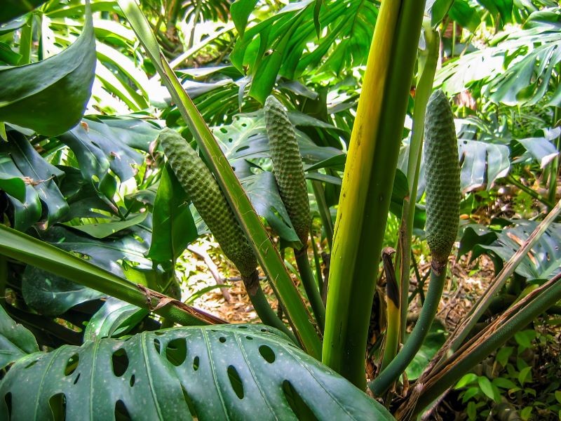 Co ciekawe, rosnące w naturze monstery wytwarzają owoce w kształcie szyszek o długości do 25 cm, których cechą jest słodki zapach oraz smak podobny do mieszanki banana i ananasa.
