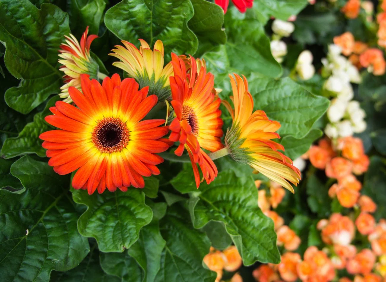 Gerbera Jamesona to kwiat, który w naturalny sposób eksperymentuje z kolorami. Jej paleta jest szeroka i pełna życia – od klasycznej czerwieni, przez subtelny róż i energetyczną pomarańcz, aż po słoneczną żółć, która wręcz promieniuje optymizmem. W ogrodach i doniczkach łatwo natrafimy na odmiany o dużych i spektakularnych kwiatach, ale też na mniejsze i gęsto osadzone.