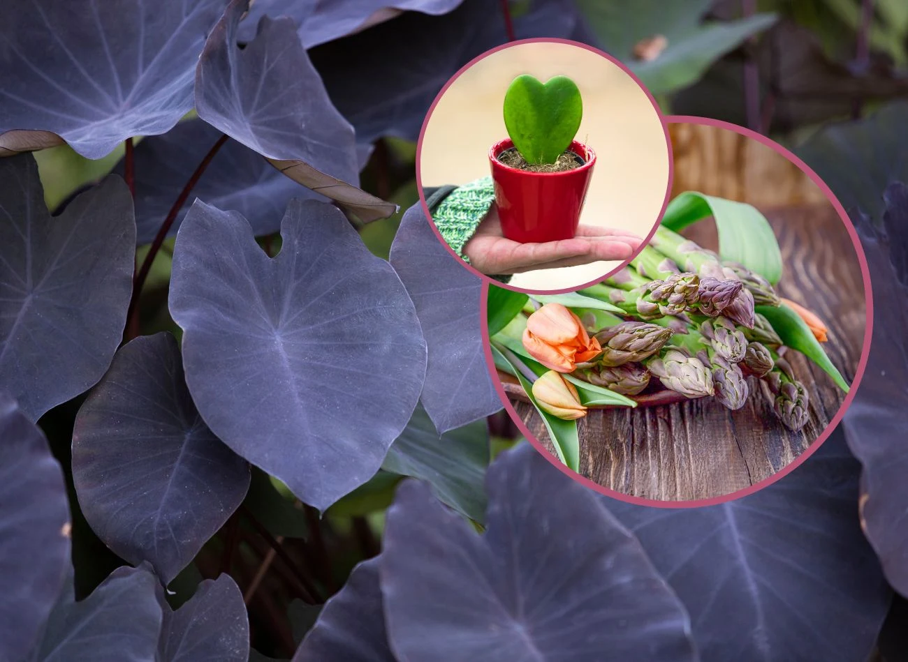 Kolokazja, znana też jako ucho słonia, będzie dużym zaskoczeniem, ponieważ jej liście o charakterystycznym sercowatym kształcie są lśniące i całkiem... czarne. Z kolei kwiaty Nematantusa płożącego, w zależności od tego, jak na niego spojrzymy, przypominają złote rybki lub usta ułożone na kształt całuska.