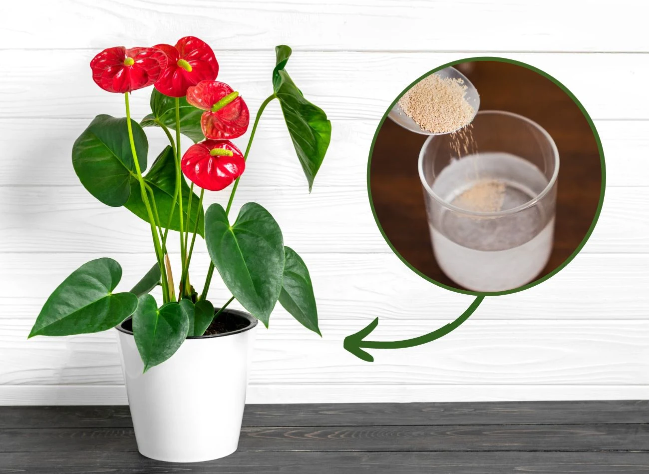 Anturium zachwyca swoją niepowtarzalną urodą. Zdarza się jednak, że roślina ładnie rośnie, ale nie chce kwitnąć. Jak sobie poradzić z tym problemem? Oprócz zapewnienia podstawowych warunków uprawowych należy też zadbać o właściwe nawożenie. Niestety preparaty ze sklepu nie zawsze przynoszą oczekiwane rezultaty. Dlatego wystarczy przygotować domową odżywkę, która pobudzi anturium do wzrostu i obfitego kwitnienia. Do jej przygotowania potrzebne będą drożdże piwne, które można nabyć w każdym supermarkecie czy sklepie ze zdrową żywnością.