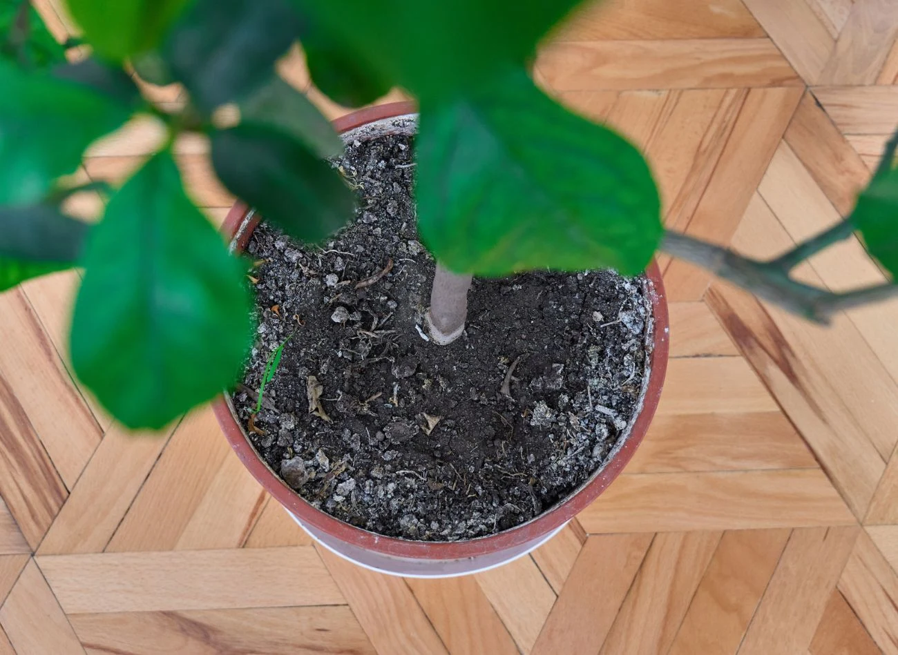 Jednak niekiedy biały nalot świadczy o wystąpieniu pleśni. Łatwo ją poznać, bo wygląda niczym warstwa miękkiej, puszystej pierzynki. Gromadzą się w niej grzybnie z zarodnikami. Pleśń w doniczce pojawia się głównie przez zbyt intensywne podlewanie, wysoką temperaturę w pomieszczeniu oraz słabą cyrkulację powietrza.