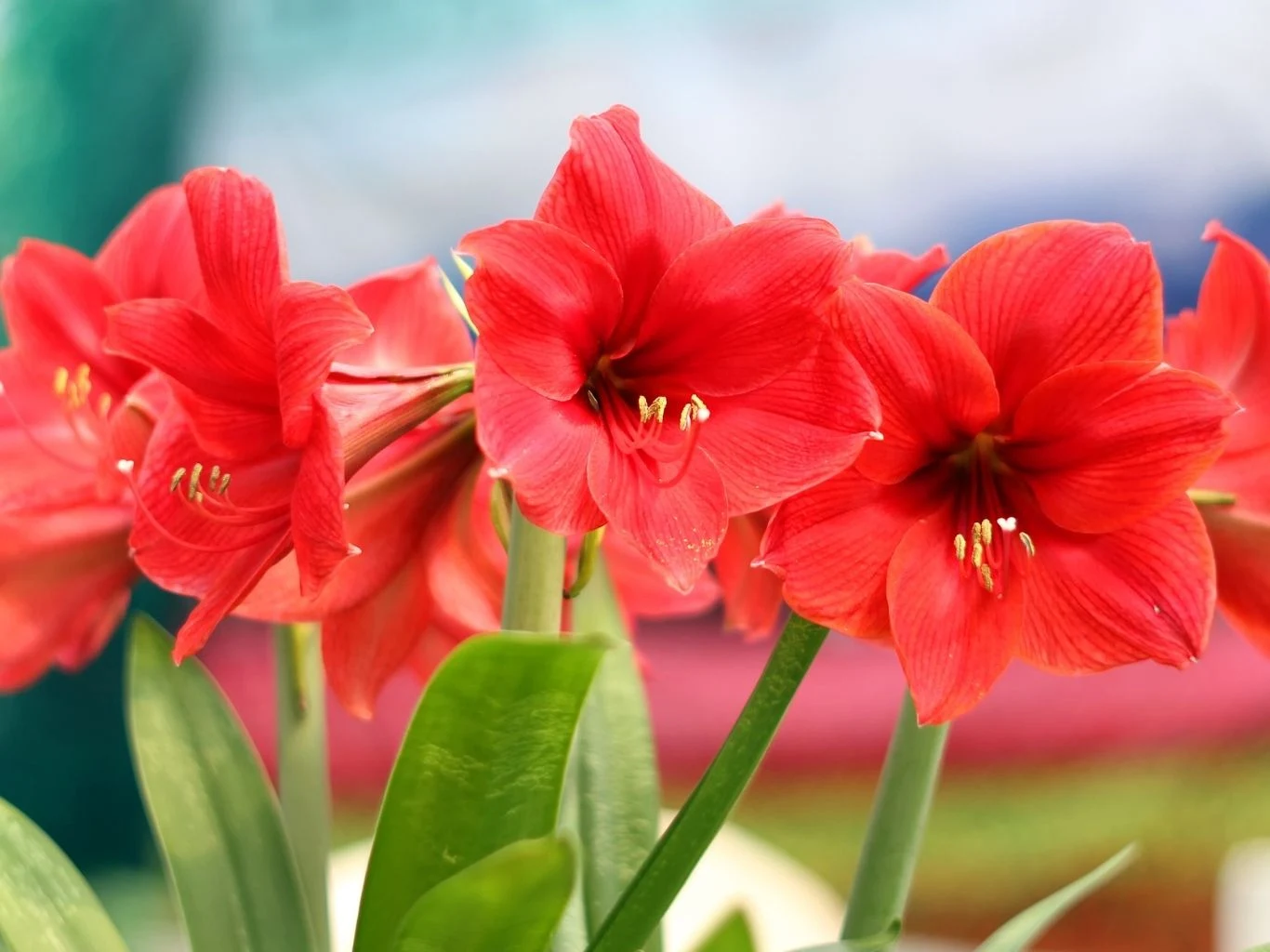 Amarylis (Amaryllis) jest rośliną cebulową, która wytwarza imponujące kwiaty w kolorze białym, różowym lub czerwonym. Osadzone są one na długich łodygach i mogą osiągać nawet 6-10 cm średnicy. Na pierwszy rzut oka przypominają lilie. Cała roślina dorasta do około 60 cm wysokości.
