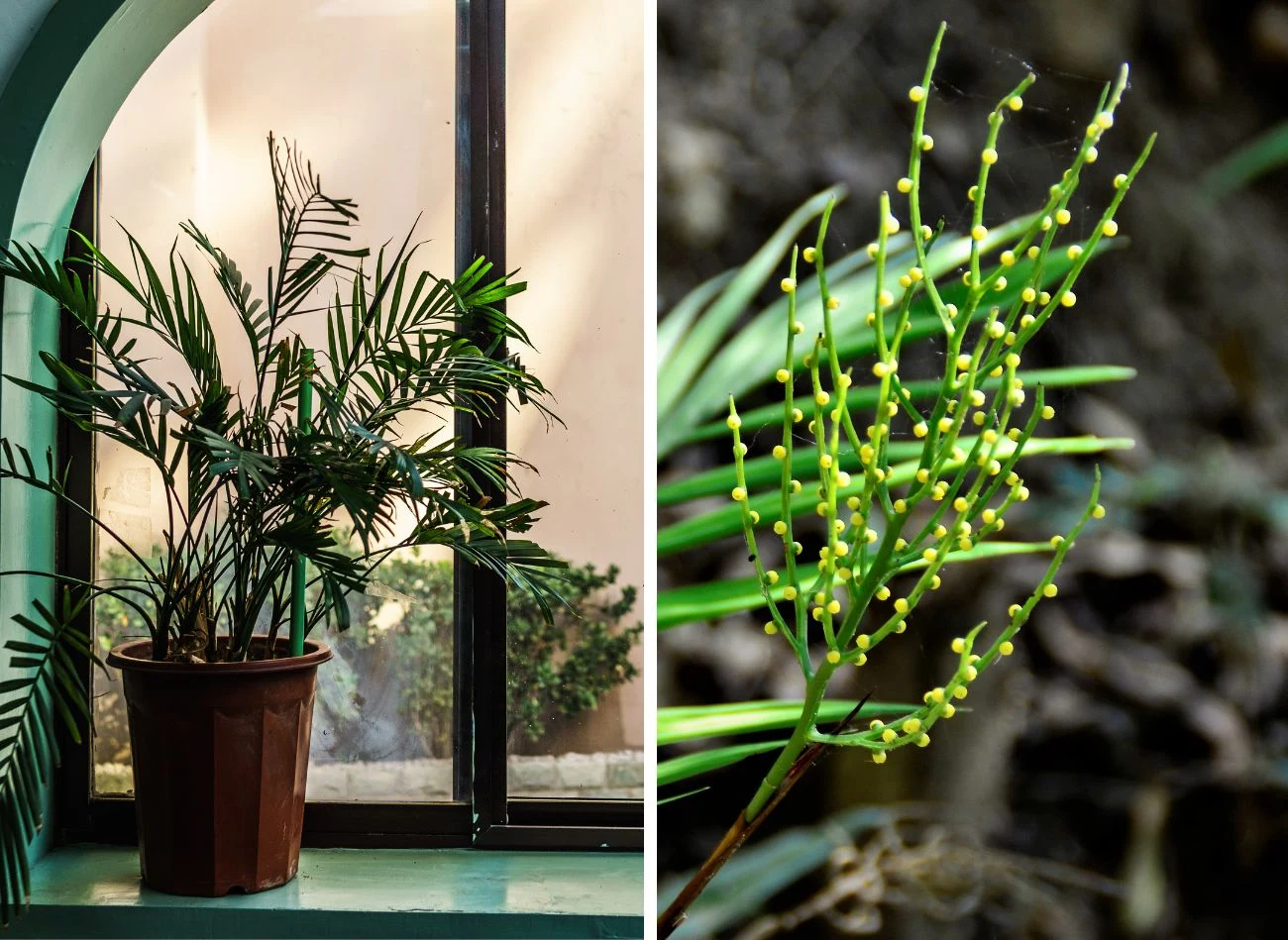 Największym atutem palmy są jej liście. Miewa też niewielkie, kuliste kwiaty w żółtym kolorze (określenie "palma koralowa” powstało właśnie w związku z kwiatami chamedory, które swoim kształtem i rozmiarami przypominają koraliki). Co ciekawe, możesz usunąć kwiatostany rośliny. Takie działanie nie powinno przynieść negatywnych konsekwencji. Wręcz przeciwnie – dzięki ich usunięciu roślina będzie mogła przeznaczyć wszystkie siły na rozwój pierzastych liści.