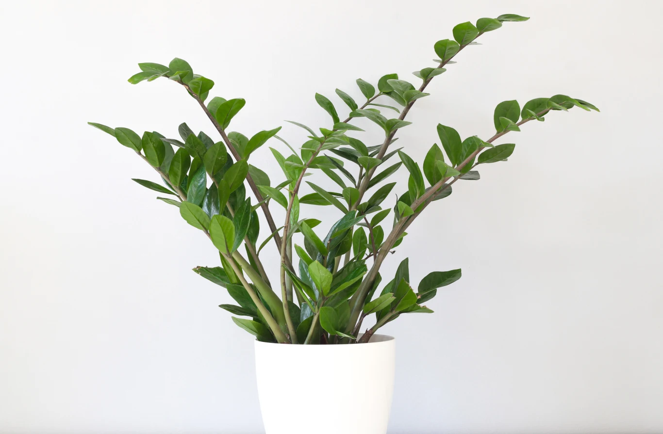 Zamiokulkas z przewieszającymi się pędami i błyszczącymi, ciemnozielonymi liśćmi jest piękną ozdobą wnętrz. Ta piękna roślina, znana z ogromnej wytrzymałości i minimalnych wymagań jest prosta w uprawie. Zamiokulkas nie wymaga częstego podlewania, bo ma zdolność magazynowania wody, poradzi sobie nawet w cieniu i zniesie suche powietrze w pomieszczeniu.
