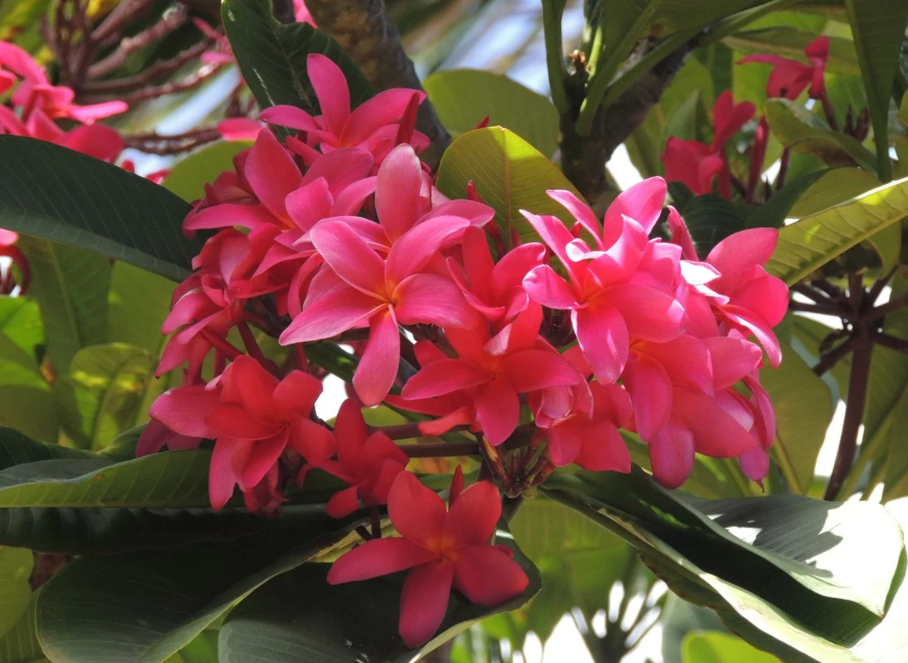 Do kwitnienia plumeria wymaga odpowiedniej ilości światła – jego brak to najczęstsza przyczyna braku kwiatów. Plumeria najobficiej kwitnie na starszych pędach, dlatego unikaj nadmiernego przycinania. Jeśli jednak roślina nadmiernie się rozrasta, przytnij ją wczesną wiosną. Przycinanie stymuluje rozgałęzianie, co pozwala uzyskać więcej kwiatów w kolejnym sezonie.